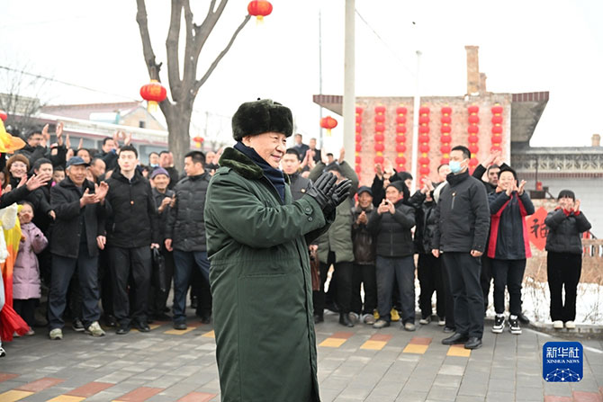 離開村子時,村民們高聲向總書記問好。習(xí)近平給鄉(xiāng)親們拜年,希望大家以生龍活虎、龍騰虎躍的干勁把日子過得越來越好。