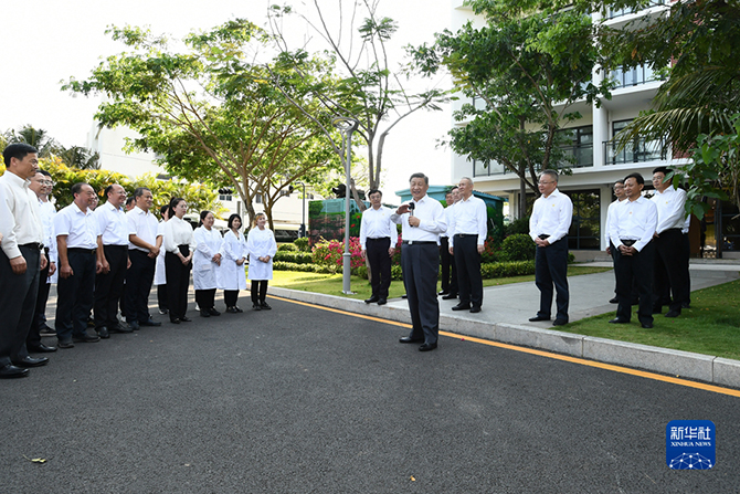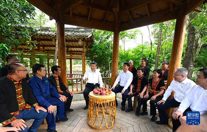 4月10日至13日,習近平在海南省委書記沈曉明、省長馮飛陪同下,先后來到三亞、五指山、儋州等地,深入科研單位、國家公園、黎族村寨、港口碼頭等進行調研。