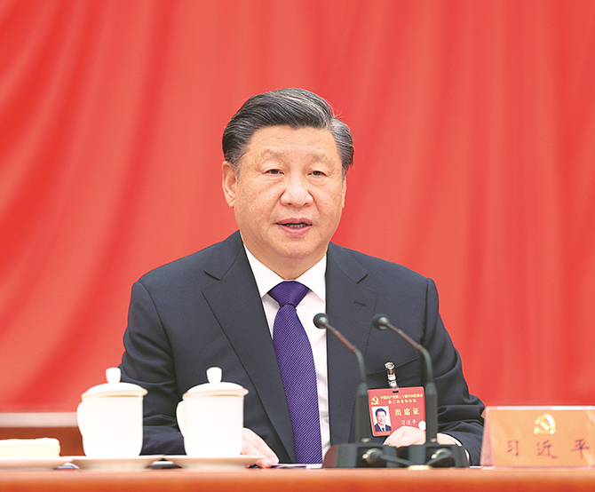 中國共產黨第二十屆中央委員會第二次全體會議,于2023年2月26日至28日在北京舉行。中央委員會總書記習近平作重要講話。 新華社記者 攝