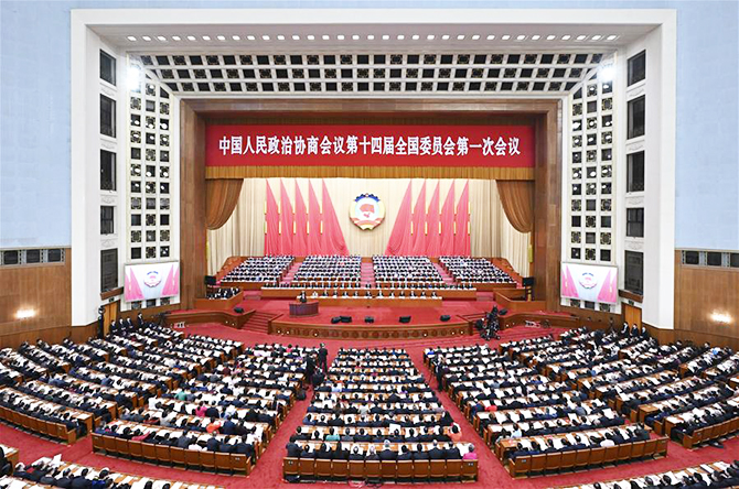 3月4日,中國人民政治協商會議第十四屆全國委員會第一次會議在北京人民大會堂開幕。 新華社記者 翟健嵐 攝