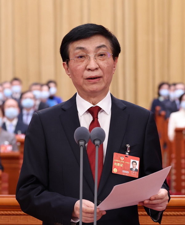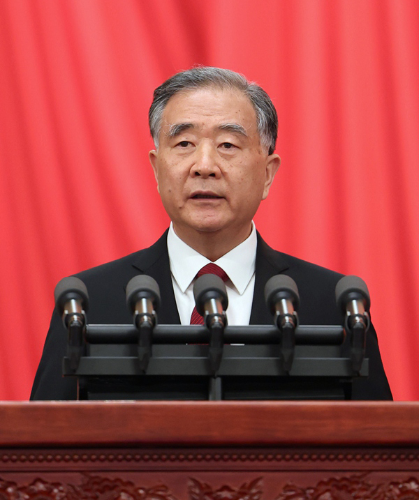 下午3時,王滬寧宣布大會開幕,全體起立,高唱中華人民共和國國歌。