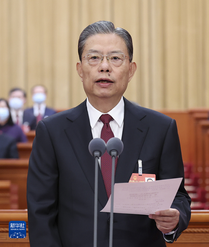3月5日,第十四屆全國人民代表大會第一次會議在北京人民大會堂開幕。受十三屆全國人大常委會委托,十三屆全國人大常委會副委員長王晨作關(guān)于立法法修正草案的說明。新華社記者 龐興雷 攝