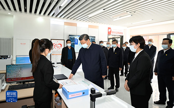 5月10日,中共中央總書記、國(guó)家主席、中央軍委主席習(xí)近平在河北省雄安新區(qū)考察,并主持召開高標(biāo)準(zhǔn)高質(zhì)量推進(jìn)雄安新區(qū)建設(shè)座談會(huì)。這是10日上午,習(xí)近平在容東片區(qū)南文營(yíng)社區(qū)黨群服務(wù)中心考察。(新華社記者 李學(xué)仁 攝)