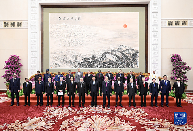 阿根廷總統(tǒng)費爾南德斯,智利總統(tǒng)博里奇,剛果共和國總統(tǒng)薩蘇,印度尼西亞總統(tǒng)佐科,哈薩克斯坦總統(tǒng)托卡耶夫,肯尼亞總統(tǒng)魯托,老撾國家主席通倫,蒙古國總統(tǒng)呼日勒蘇赫,俄羅斯總統(tǒng)普京,塞爾維亞總統(tǒng)武契奇,斯里蘭卡總統(tǒng)維克拉馬辛哈,土庫曼斯坦民族領袖、人民委員會主席別爾德穆哈梅多夫,烏茲別克斯坦總統(tǒng)米爾濟約耶夫,越南國家主席武文賞,柬埔寨首相洪瑪奈,埃及總理馬德布利,埃塞俄比亞總理阿比,匈牙利總理歐爾班,莫桑比克總理馬萊阿內(nèi),巴基斯坦總理卡卡爾,巴布亞新幾內(nèi)亞總理馬拉佩,泰國總理賽塔,尼日利亞副總統(tǒng)謝蒂馬,阿聯(lián)酋總統(tǒng)特別代表、哈伊馬角酋長國酋長卡西米,法國總統(tǒng)特別代表、前總理拉法蘭,希臘總理高級代表、發(fā)展部部長斯克雷卡斯等20多國國家元首、政府首腦、高級代表,以及聯(lián)合國秘書長古特雷斯、新開發(fā)銀行行長羅塞夫等國際組織負責人出席開幕式。