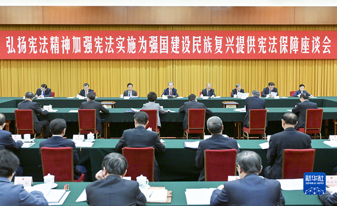 12月4日,“弘揚憲法精神,加強憲法實施,為強國建設(shè)、民族復(fù)興提供憲法保障”座談會在北京舉行。會上傳達了習(xí)近平重要指示。中共中央政治局常委、全國人大常委會委員長趙樂際出席座談會并講話。新華社記者 高潔 攝