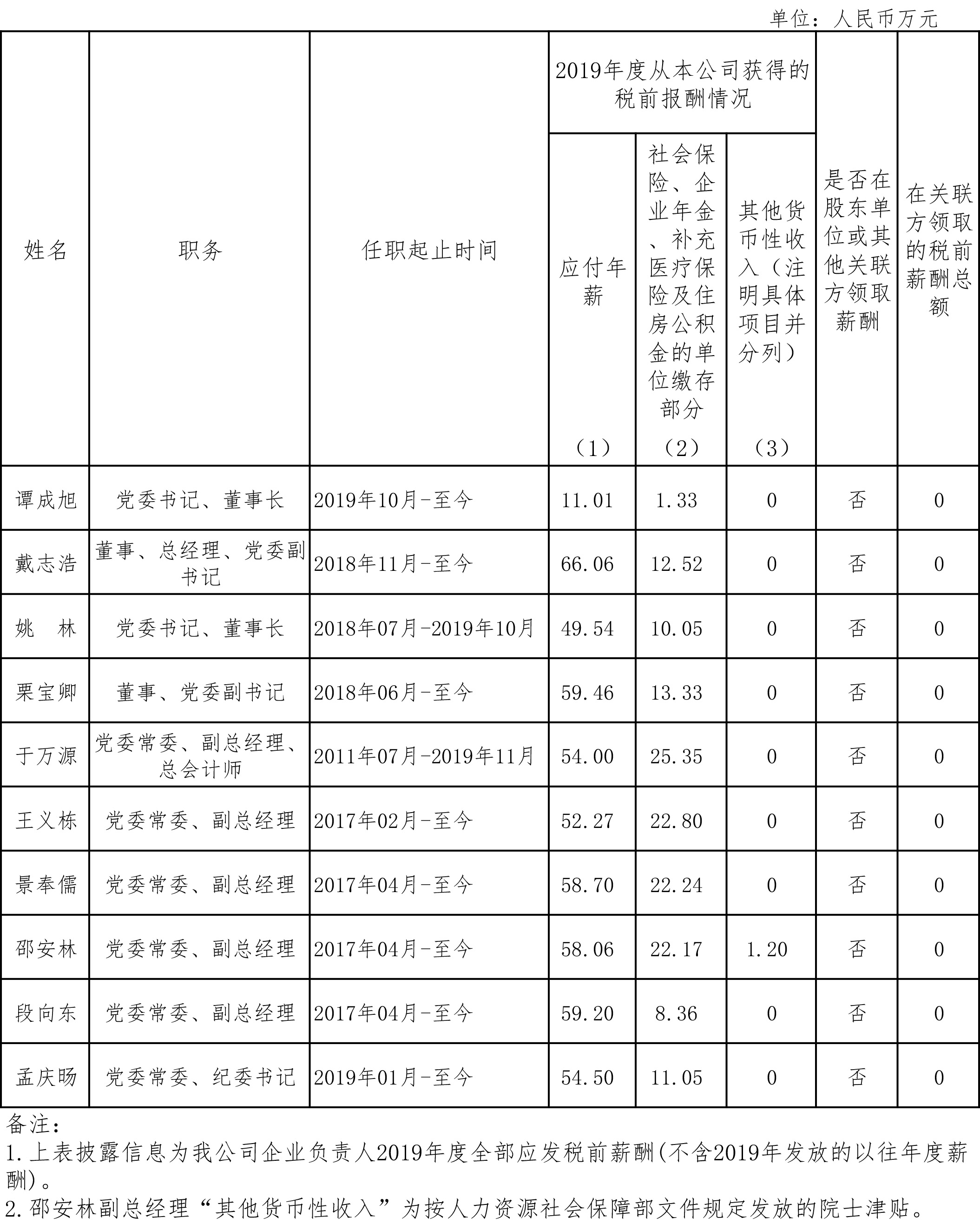 鞍鋼集團有限公司企業負責人2019年度薪酬情況