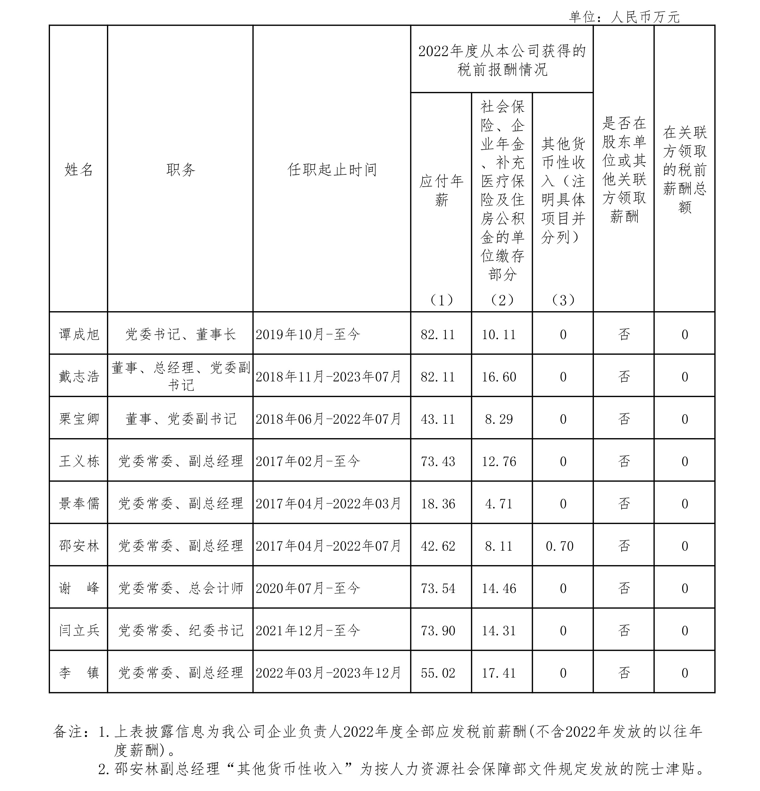 鞍鋼集團有限公司企業負責人2022年度薪酬情況